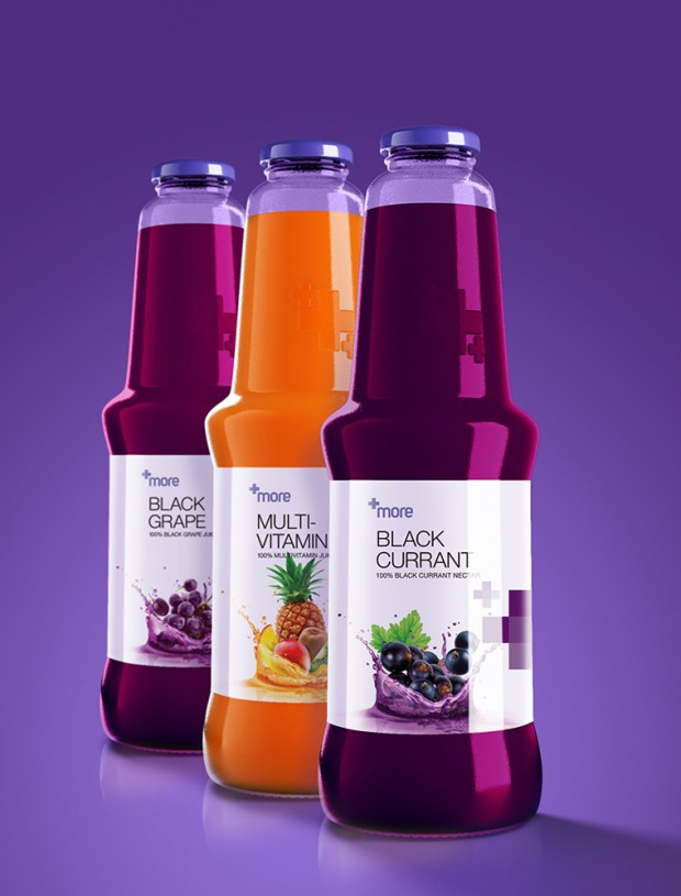 More is a premium fruit juice which contains high percentage of real fruit extracts, therefore the name “More†was selected for the brand. The plus (+) icon on the package is used as a symbol to indicate the rich fruit ingredient of More. The plus changes color according to the flavor. White is used all over the package. Plus and white emphasizes the health and triggers the perception of hygene. White is also differentiating the package of More from the other fruit juices on the market shelves and putting it forward. The simplicity of the package is an advantage. Illustrations on the package are effective but not distorting the simplicity.