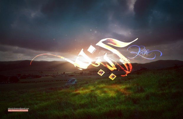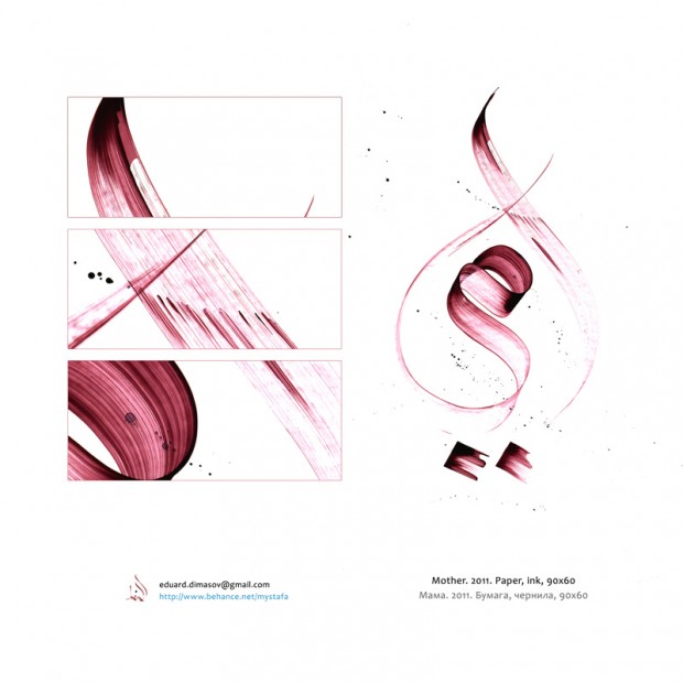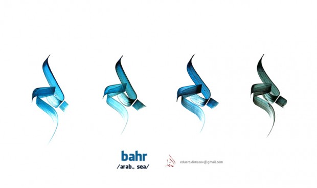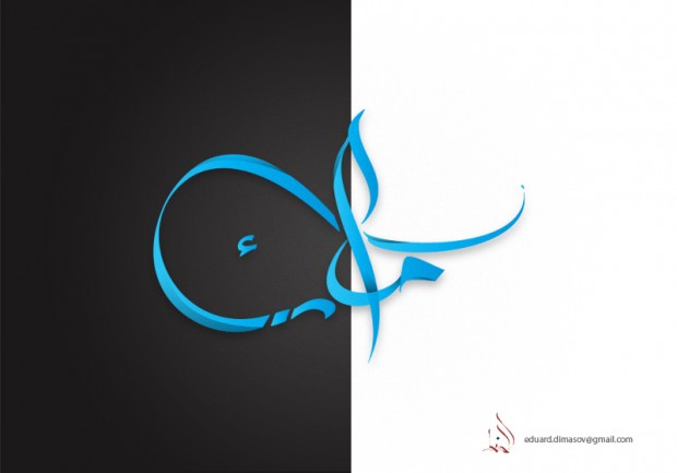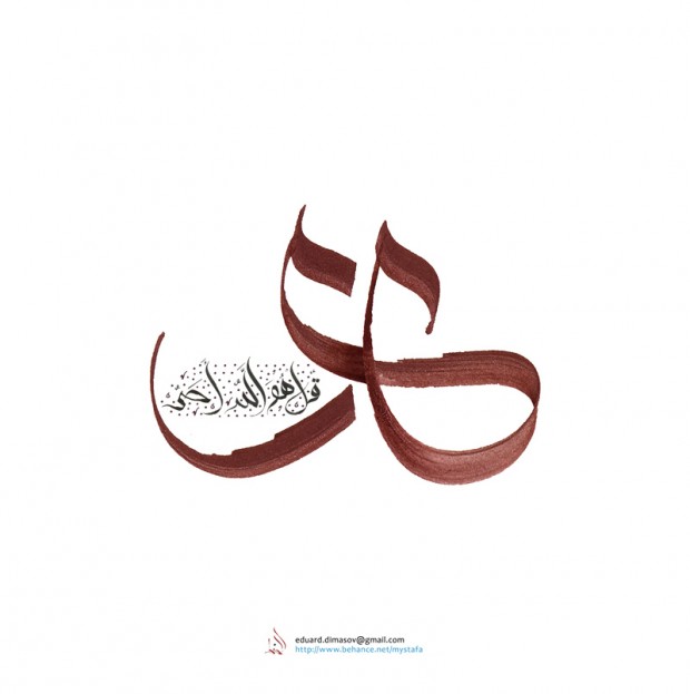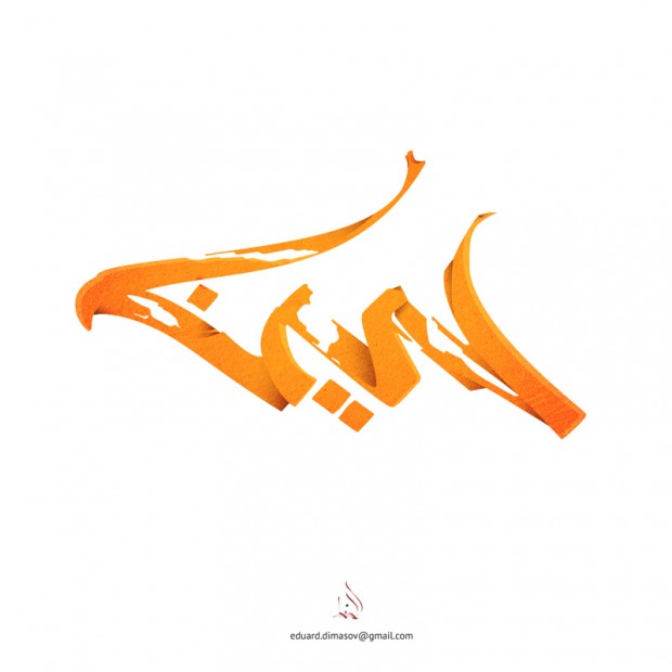 Eduard Dimasov was born in 1984 and grew up in Russia, Perm city. The young artist is currently working in Arabic calligraphy, design and corporate design in particular. As a calligrapher and a designer Dimasov made a start about a year ago. For such little time his works gained their popularity not only in Russia. Some of his calligraphy and designer pieces were sold in Germany, UAE, Libya, Canada and other countries. The features of his calligraphy are dynamic curves, dimensional lines and flying designs. His calligraphy is a mixture of minimalistic style and inner philosophy.