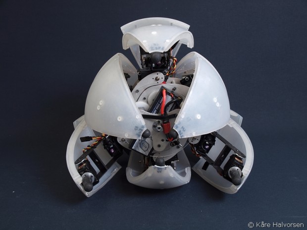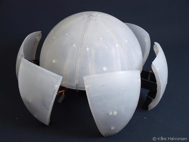 This is an awesome project or robot by KÃ¥re Halvorsen (aka Zenta). It is a sphere shaped hexapod that Zenta is planning to give the following features: