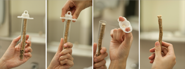 THIS aims to repackage and promote the miswak as an organic, biodegradable, portable, more beneficial substitute for toothpaste and a toothbrush. The biggest challenge was figuring out how to package and market the twig to a contemporary American audience, who would not be entertained with the idea of biting off the top of the stick in order to use it. The solution for this is a cigar-cutter-like cap that peels off the outer layer to reveal the natural bristles, and slices them off after use. It also protects the stick from germs and microbes.