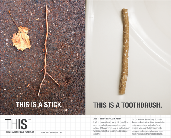 In addition, an online campaign was launched which offered to donate a tooth-stick to a person in a developing country with every THIS purchase.