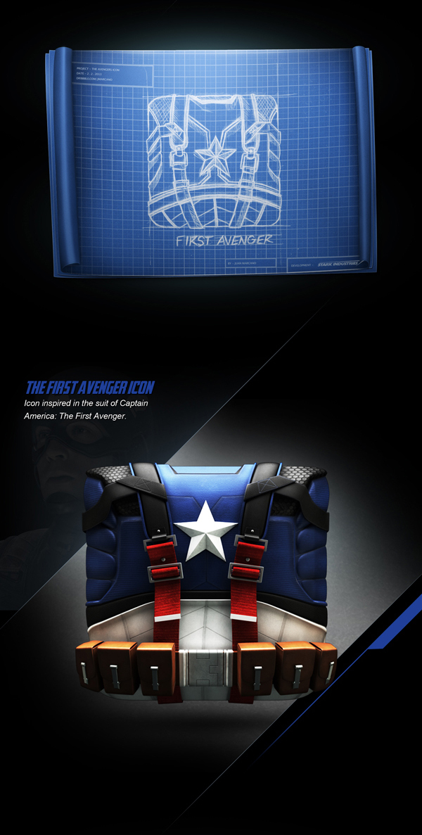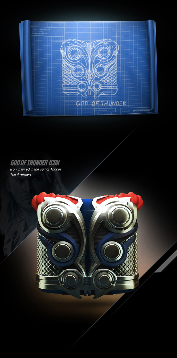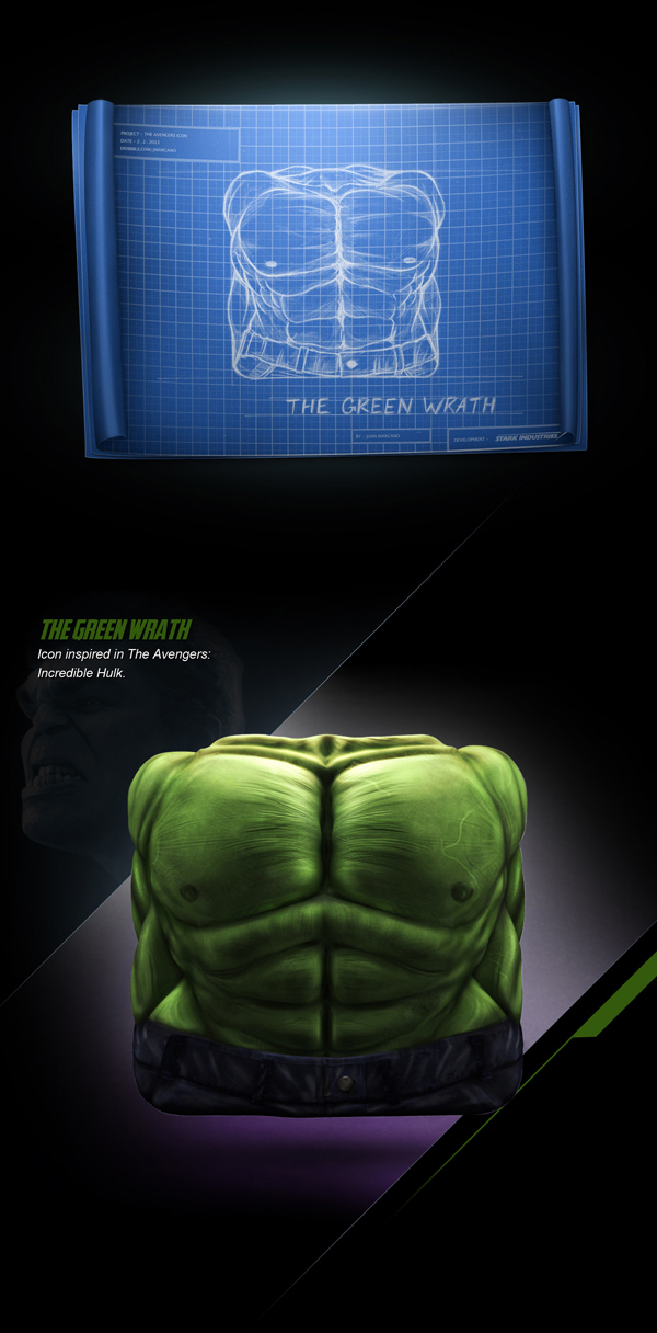 This is a 3D icon design project, inspired in Avengers characters: Iron Man, Captain America, Thor and Hulk. Was created with Maya, Mudbox and Photoshop, made just for fun and personal portfolio.