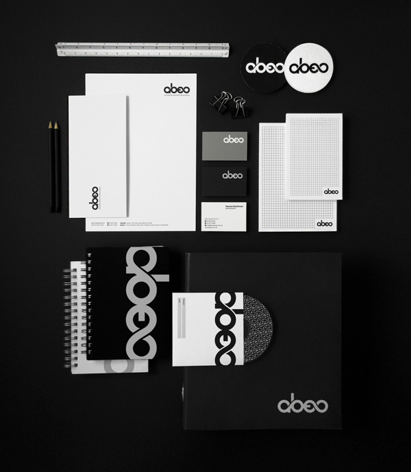 Identity for Abeo, Australian architecture and interior design studio. The word Abeo means change (metamorphosis) in Latin, so the concept of metamorphosis was crucial in developing the logo. Curvy and round shapes of logotype relates to dynamic and energetic spirit of people from Abeo. Clean, modern and minimal style, together with black monochromatic color. Designed by Kosta Rakicevic.